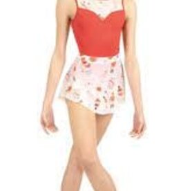 This camisole-style leotard features a full upper-back overlay of luxurious, patterned mesh, adding a touch of royal sophistication.